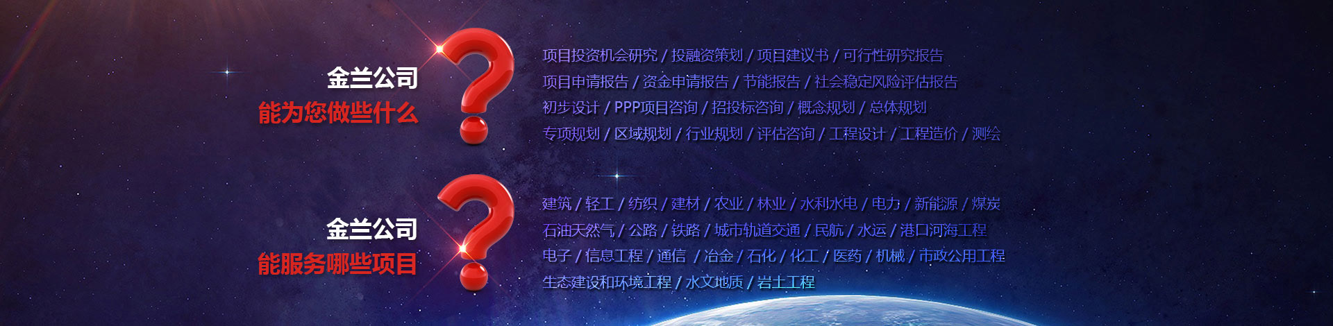 | 公司介绍 | 河南金兰工程咨询有限公司,创始于2006年,是以工程咨询及企业策划为主营业务,推出“项目前期市场调研、可行性研究、节能评估、项目策划、规划设计、招投标咨询、工程造价、测绘、战略指导、融资策划”全过程服务业务。业务覆盖建筑、农业、机械、电子信息、轻工、纺织、建材、钢铁、医药、林业、节能与循环经济、市政公用工程、生态建设和环境工程等领域;客户遍布全国各个省市及自治区。…… |